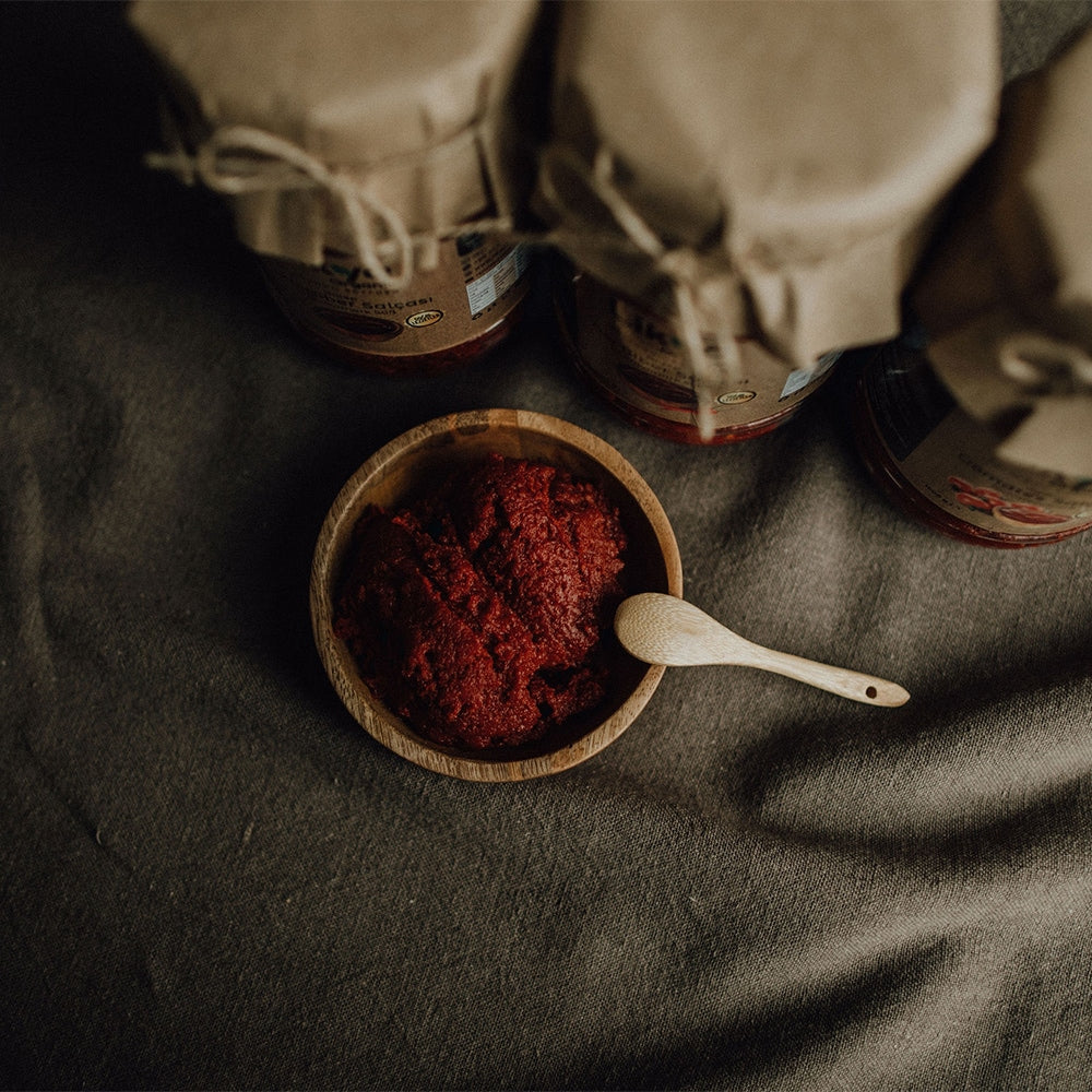 🌱 Domates salçamız, geleneksel yöntemlerle odun ateşinde, özenle ve sabırla hazırlanır. Bu özel yöntem, salçamıza karakteristik bir lezzet ve yoğun aroma kazandırır.