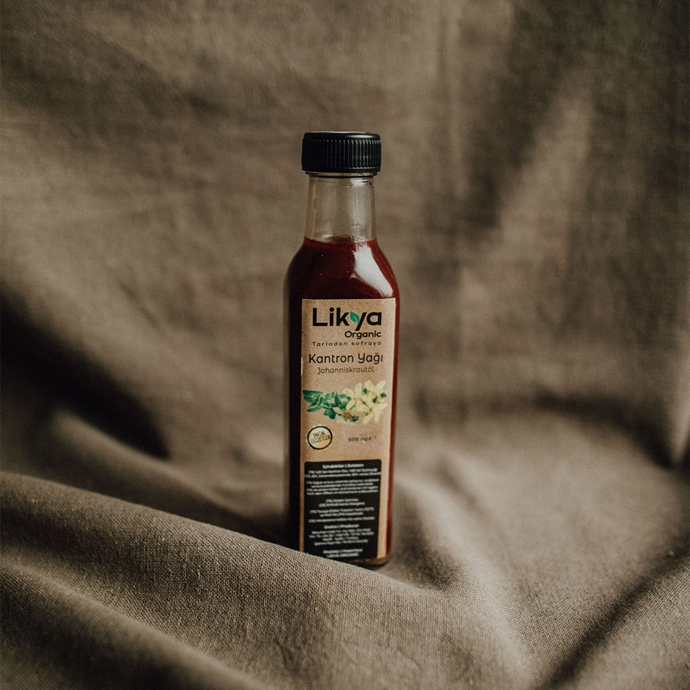 🌱 Likya Organic' in Kantaron Yağını, Sarı kantaron çiçeklerinin soğuk sıkım zeytinyağı içerisinde bekletilmesiyle elde etmekteyiz.