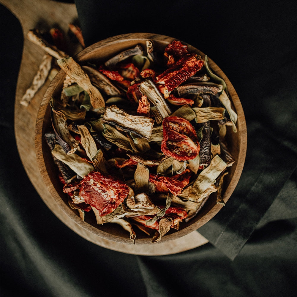 🌱 Likya Organic’ in Karışık Mix Türlü Kurusunun içinde; dilmelik patlıcan, taze fasulye kurusu, domates kurusu, kırmızı biber (acı) yer almaktadır.
