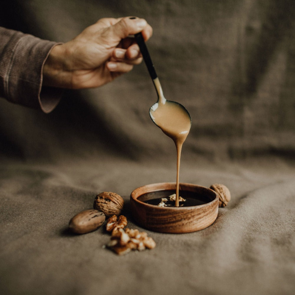 🌱 Tahini karanlık ve serin bir yerde saklayınız. Tahinin yağı (susam yağı) kabın üstünde toplanabilir. Zaman zaman karıştırınız.